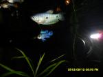 Двухточечный гурами - самка. Жемчужные гурами какого размера? Сделайте фотографии без вспышки, в тёмной комнате при сильном верхнем освещении аквариума.