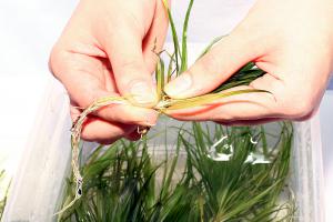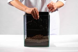 Глава 1: Подготовка аквариума. Я не стал использовать старый аквариум, так как уже есть новый вариант десяточки склеенный также по новой технологии... Наш новый метод поклейки аквариумов позволяет получить продукт без остатков силиконовых "колбасок" и следов их среза. Швы при этом выглядят более изящно (но может это я слепой да не вижу погрешностей Грунт и подложка будут использованы от ADA, их я купил их с большим запасом ... (просто расфасовки меньше небыло) Для начала нам нужно приклеить подложку. Я использую для этой цели термо изоляционный материал, он удобен тем, что с одной стороны самоклеящийся, с другой покрыт алюминиевой фольгой, которая позволяет легко аквариум в дальнейшем перемещать по столу, если это требуется. Но выбор подложки как говорится каждому по вкусу и надобности... Вырезать подложку лучше всего по размерам днища без учета граней тогда она как бы спрятана под гранями и не выглядывает из под аквариума.. Сей дивный резачек мне любезно подарил Назар/nazar.e30, за что я ему безмерно благодарен Далее ассистирует моя супруга Катя Теперь готовим фон. Я использовал черный Oracal 641 серии. Его отрезаем на сантиметр больше по ширене и высоте относительно аквариума, чтобы в случае перекоса был допуск на ошибку, лишнее позже срезаем. Процесс выглядит так: Глава 2: Закладка грунта. Установка декораций. Я всегда в своих темах акцентирую внимание на то, что "Грунт - всему голова". Грунт в аквариуме не только якорь для растений, не только элемент декора, грунт - в первую очередь это биологический фильтр. И если Вы хотите иметь успешный аквариум, отнеситесь к грунту с полной ответственностью, это позволит в дальнейшем не иметь проблем с: водорослями; неприятным запахом; высокой смертностью обитателей аквариума, да много еще можно перечислить... Как он работает: Когда у Вас правильно заложен грунт, через время в нем поселятся как бактерии (о бактериях я расскажу в отдельной главе, так как им я уделяю наиважнейшую роль), так и всевозможные микроорганизмы, которые будут перерабатывать отходы жизнедеятельности видимой плавающей и ползающей живности и тем самым давая хорошее питание растениям. В интернете много информации о фракции, питательности грунтовых подложек и тд. Я не стану вдаваться в тонкости и не пытаюсь обобщить и универсализировать запуск, я использую понравившиеся мне продукты и описываю конкретный пример развития именно этого аквариума, так как двух одинаковых запусков не бывает... И так продолжим... Подложки нам понадобится совсем немного, примерно как этот пластиковый контейнер (его емкость 0,5л). Высыпаем подложку в аквариум, и собираем его в горку отодвигая от передней и боковых граней, чтобы она нам не портила весь вид... А земли нам понадобится примерно три-четыре таких контейнера, а также немножко более мелкой фракции Powder, но по большому счету ее можно получить просеяв грунт на специальном сите (про это я когда-то писал в других темах, поэтому не стану повторяться.) Землю просыпаем в первую очередь у граней, тем самым ограничив возможность сползания подложки в видимую зону - к стеклу. Для тех, кто впервые читает мою тему и в недоумении от названия проекта (Вот собственно эта "собака"...) Устанавливаем декорацию, в данном случае нашу зёльбаку Далее декорируем более мелкой фракцией, о которой упоминалось ранее, этого мелкого грунта 
