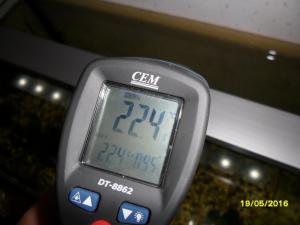 Измерение температуры светильника! Сегодня я решили провести температурный тест моего подопытного образца светодиодного светильника Aquaxer Simply LED Light 50. В одной из тем обзоров уже было озвучено что светильник практически не нагревается за весь промежуток работы. Я хочу показать в каких диапазонах находится температура светильника за время его работы, а именно за 8 часов. Температуру буду измерять прибором под названием "Пирометр". Пирометр CEM DT-8862 представляет собой прибор для бесконтактного измерения температуры поверхности различных материалов. Измерения буду проводить в три этапа : 8 часов, 12 часов и 17 часов. И так начнем! Этап №1. Замер производился около 8 часов утра. Светильник был включен и я сразу провел замер температуры. На фото показываю температуру поверхности профиля в котором непосредственно располагается плата с 11 светодиодами серии SMD5730. Также произвел замер температуры воды в аквариуме. Температура профиля Температура воды Этап №2. Замер провел в 12 часов дня. Светильник проработал без перерыва 4 часа. Температура профиля Температура воды Исходя из максимальных замеров: температура поверхности профиля поднялась на 5,7°С градусов. Этап №3. И так последний замер провел в 17 часов. С момента работы прошло 9 часов. Температура профиля Температура воды Вывод: Посмотрев на показания Пирометра можно увидеть, что за 9 часов непрерывной работы температура выросла с 22,4°С до 33,3°С ,т.е. на 10,9°С Это очень хороший показатель, т.к. чем меньше нагрев тем больше срок службы светодиодов. Поэтому температурный тест светильника Aquaxer Simply LED Light 50 можно смесло отнести к положительным сторонам прототипа. Еще решил замерять температуру светодиода напрямую, а так же, для сравнения, температуру лампы Т8 18В после тех же 9 часов работы.