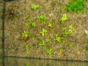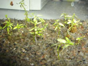 Специально для повойничка запустила крошечный аквас на 7 литров. Грунт - крупнозернистый песок с тонкой подложкой из случайной (шо нашла) глины. Уровень воды - 10 см. Вода: половина из действующего акваса, половина - талая. Температура воды комнатная. Яркий свет. СО2 нет. Все! Рассуждала так: растение-то наших широт, значит нужно попытаться создать соответствующие условия. Сейчас активно развивает корневую систему. |