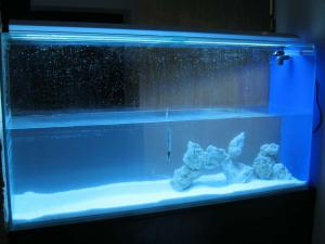 Ну грунт уже засыпан и водой литров 60 залит. Я теперь буду 6 литров набрал+240гр соли и туда помпу пока следующие не наберутся и в аквас.