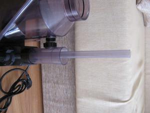 И так имеем пеноотделитель ViaAqua in-samp Skimmer2 Sk-388NW или как на сайте продавца Atman SK-388 NW. Заявленая мощьность(или производительность) 250галонов=1136.5 литров. Размеры:в 510мм ш 230мм д 350мм. Почти весь прозрачный из пластика шиколадного цвета. Основание чёрное на резиновых ножках. Чашка для сбора пены шириной 200мм и глубиной 120мм Посадочное место для чашки имеет уплотнительное кольцо. Крышка чашки входит в паз и фиксируется. Внутреняя часть состоит из стакана(диаметр 65мм высота 190мм) и трубки(диаметр 22мм) выходящей из камеры смешивания внутрь пенника и изогнутой в низ.Не разборная. Камера смешивания разборная и состоит из 3 частей. Это самая высокая часть пенника и она выше чашки гдето на 5 см. Диаметр стакана 45мм внутреней трубки 20мм бокового отвода 26мм Трубка для забора воздуха имеет регулятор на конце и высота её от дна 350мм диаметром 12мм. К помпе подсоеденена через переходник(или разьём) Вентури. Помпа ViaAqua 2500л\ч 45ватт Подьём на 2.25м, Керамика+ игольчатая крыльчатка. Устанавливается в паз к основанию пенника. Слив разборной регулируется выоста сброса. Трубка диаметром 32мм и длиной 200мм имеет уплотнительное кольцо и резьбовую фиксацию, мочалку. Я не эксперт в этой области ,а скорее наоборот но пенник мне понравился по качеству изготовления и конструкции. Теперь нужно ваше мнение по поводу сампа для этого пенника. Размеры , где и какой высоты делать перегородки и как с уровнем воды в нём. Благодарности: