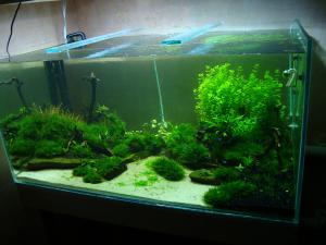 Немного о свете.У меня стоят две МГ(150 и 70 Вт),высота 25 см над водой.Скептики скажут что этого мало но я добавляю фото своей кубы как видно на фото куба не тянеться в верх,она наоборот вся зарылась.Еще у меня стоят две Т5 по 24,но они стоят в одном углу,так как 70 ватка не освещает полностью свою половину,и была темная зона(до появления Т5) МГ ламп не видно,они заделаны в коробочку по этому не пугайтесь от страшного вида на фото Сообщение отредактировал Moloko - 15.4.2011, 19:18 -------------------- -Растения для вашего подводного сада. -Backbone Mountain. Aquafanat battle 2013 -Iwagumi vs ryoboku 2014. "Легенда о забытой вершине". ![]() |