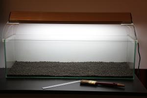 Вот такой чудный пакетик, и естессно без окошек, чтоб не подглядеть что же там внутри... И когда я его вскрыл, я сразу понял, почему его не показывают через упаковку Он весь в каких-то какишках Ну и согласно инструкции на моем любимом языке, японском... уложил слой этого усего, и чуток отодвинул от края стекла к центру, дабы потом присыпать под край грунт, и ЭТО небыло видно Ну и потом присыпал землей Разровнял ее по поверхности... За неимением специальных лопаток эту процедуру удобно делать линейкой и кисточкой... Потом установил камни, как были на примерочном эскизе и присыпал снова землей, тоже ADA Amazonia, но более мелкой фракции "POWDER"... А далее снова эти мучительные терзания и сомнения о позициях камней, все двигал крутил, а потом установил и махнул рукой А потом вспрыснул водой, чтоб закрепить перед наполнение водой... Воды набрал столько, чтобы только покрыть грунт, и теперь откисает чтобы полностью пропитались гранулы и не всплывали перед посадкой хемиантума... Пока все, сейчас иду садить... Продолжение следует... -------------------- |