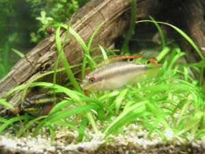 По поводу отсадки второго барбуса - для меня это не реально. Вечером второй барбус как и все поел с аппетитом, ожил, но при появлении сачка они все (барбусята) становятся такими реактивными.... в моем травнике ну никак его не могу споймать. Фото прилагаются: Аквариум до того, как растения подросли Пара Пульхеров Барбус который больной -------------------- АКВАРИУМ 200 литров. + еще 110 литров....