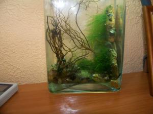 Родственник обещался склеить мини-самп и сделать приемлемую крышку. Светильник для нано должны привезти. Но пока всё остаётся как было. Определённо сделал вывод: без прибамбасов не обойтись. Или сворачивать, или усовершенствовать.