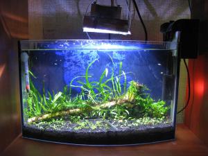 Так вот , этого оказалось абсолютно ДОСТАТОЧНО , по крайней мере всем моим растениям, вплоть до почвопокровки (лилеопсис, марсилия, пилюльница). СО2 снова понизил подачу, удо даю 2/3 от прошлых доз. Получается неплохой размен: 375 Вт МГ на 110 Вт ЛЕД с ЧУТЬ МЕНЬШИМ форсажем. И проблема перегрева совсем отпала.. Также переставил 3Вт лед свеильник (на 3 светодиода 6000К ) в креветочник около 9 литров воды. Сразу визуально света стало маловато (стояла экономка на 14 Вт), думал надо будет добавлять ещё. Но через неделю убедился , что и этого достаточно (растут только мхи), светит 12 часов, без СО2, только минимум удо. И нитка пропала . В общем пока впечатления только позитивные. ЛЕДы почему-то при равных ватах дают намного больший эфект чем прочие. Буду дальше смотреть. -------------------- Делай добро и бросай его в воду ... |