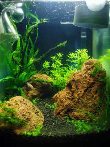 Давно обещал отписаться по поводу запуска - времени катастрофически не хватает. Аквариум запущен, теперь отчёт! Итак, повторюсь по материалам скейпа. У любимой нарыл по ящикам (благо она заядлая аквариумистка Теперь по порядку. В вымытый и вытертый насухо аквариум засыпан керамзит мелкий Затем выставлены "камни" и засыпан грунт, примерно 1л. Грунт нужно разравнять, для этого взял кисточку и мне усердно помогла это сделать моя лапочка-дочка Основа композиции готова Из запущенного аквариума налил в свой литра 2 воды и оставил промокнуть, т.к. грунт б/у и оказался довольно суховатым. На лаву, при помощи супер клея, приклеены мхи и постоянно опрыскивались, пока высаживал кубу. Далее, за основной камень, высадил веточек 30 микрантемоидеса и залил воды до полного объема. Воду доливал рем. осмос + бактерии Сичем стабилити. Готово Фильтр заранее был установлен в кристалльник любимой, дабы губки набрались полезных бактерий. Теперь бум растить, делать подмены воды через день 40% и пока лить только калий. Буду рад обсуждению моей работы. |