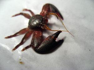 Вчера, а вернее сегодня ночью удалось отловить краба. Он только полинял и был каким-то вялым, видимо поэтому и удалось поймать, так как в другие дни он очень проворный и сильный. Посадил я его в отсадник, где у меня непрошенные гости живут