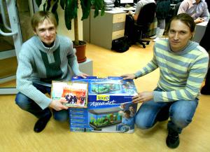 А вот и фото Алексея ( sbr007) с подарочком в нашем офисе и с молодым счастливым папой Александром Стрижаком, региональным представителем ТМ Tetra по Харьковскому региону -------------------- С уважением, Команда Тетра Официальный представитель Tetra в Украине: компания "Сузирья " тел. 057 775 68 15 (33), факс 057 775 68 18. г. Харьков 61105, ул. Зерновая 4 Благодарности: