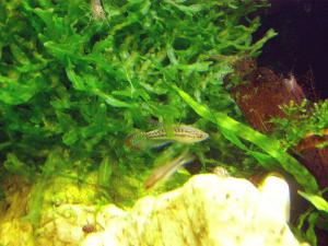 Когда делалась фотография, аквариум освещался экономкой и светильником с двумя лампами Т5 общей мощностью 16 ватт. А экономку 6400К я искала долго и безуспешно - ни в магазинах, ни на рынках не было - только 4100К или 2700К. |