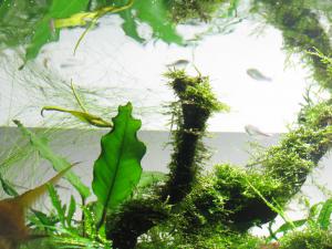 По началу там где мхи и риччия было как-то веселее - фактурнее всё было, а сейчас всё в единую массу срослось. Надо это дело как-то разбавлять, выделять, детализировать... Не знаю как там было до стрижки, но левый фланг зарос вокруг коряг тоже не слабо, да так что этих крученых коряг стало не видно в отличии от правой части. Гиграфила панатифида - это ты зря туда.