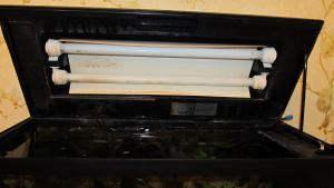 Столкнулась, с той же проблемой что и shakhtyor-84 токо аквариум, у меня, на 180 литров, смогли впихнуть под крышку ещё один светильник и одну члампу на 10 ватт, больше никак туда ничего не впихнёш, Лампы стоят фирмы гло по 20 ватт ЛАЙФ,САН, И АКВА,и подсветка 10ватт.света не хватает, появляется бурый гналёт на растениях.Увидела на рынке светодиодные ленты, вообще идеальный вариант, они места мало занимают.НО проштудировав, етот форум и ещё один, статей, на ету тему много, но вывод один, не подходят свето л диоды для растений, для рыб само то, для морских тоже, а для травников не идут, и по спектру они не очень, и научным языком тоже есть обяснения, почему сфокусированный свет не походит, и даже человек експеремент проводил .300 долларов вложил в лампу для травника, теперь за пол цены продаёт. так что у него кто хочет можно купить, деньги секономить и время,. Хотелось , бы чтоб ето было не так конечно. потому что планирую, кпрышку, убирать, и ложить нужное кол-во светильников , просто на покровное стекло, красоты ето не добвавит однозначно