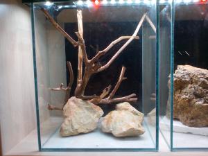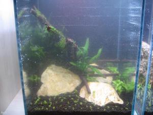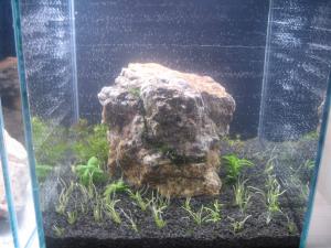 Подмениваю 5л раз в двое суток той же осмосной (не реминерализированной) водой. А вот про мох на камнях - мне не очень нравится.... Хочу чтобы "кочки" из кубы торчали