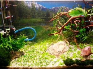 После этого я убрала мохоелки и аква прожила до сегоднешнего дня в полном здравии и без них. Правда как по мне она переросла и с этим что-то нужно делать. К тому же картинка приелась.... Я решилась на редизайн аквариума. Правда грунт я не убирала из соображений наличия в нем нитрифицирующих бактерий и другой нужной всячины для биоравновесия банки. Так же сохранила водичку из аквы и все чем богат фильтр. Одним словом я слила всю воду в огромную кастрюлю и переставила туда работающий фильтр. Дальше самое интересное. Что бы такого сотворить в акве на сей раз? Пришла к такому варианту. Уж очень мне когда-то приглянулся проект "Коловрат" ну и частично идея взята была оттуда (ronin) респект! Что вышло судите сами. Коловрат это мало напоминает, да и цели создать копию не ставила, но вот коряга утыканная анубиасами, снизу окруженная бликсой, на холме покрытом стаурогином это очень мне по душе. Еще раз спасибо за идею, ronin! -------------------- Хорошие слова сказать не сложно, но они долго живут в сердце человека! С Ув. Таня |