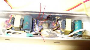 В период Таниного отсутствия "надсмотрщик" за аквасами при доливке воды имел неловкость попасть несколькими каплями прямо в дырДочку охлаждения драйверов к которым подключены светодиоды - как результат один драйвер на 3 средних светодиода сгорел. Поэтому было принято решение продолжить эксперимент уже с использованием светодиодных лент (впрочем это планировалось сделать, но только немного позже). Уже всем известное основание (алюминиевый радиатор) было подвергнуто чистке после отпаивания 9 штук одноватных светодиодов и на их место была наклеена светодиодная лента в силиконе (стоят диоды серии 5050). Количество наклеиваемых светодиодов изначально не обдумывалось - наклеил сколько оставалось на бабине да и всё. Однако затем я принял решение , что необходимо для чистоты эксперимента сохранить уже ранее апробированную мощность в 9Вт. Были произведены замеры потребляемого тока ина радиатор наклеен ещё кусок ленты только с другой бабины - мощность его по рассчету составила 9.35Вт = 0,8 Ампера * 11,7 Вольта (блок питания немного просадил напряжение под нагрузкой) . Бабины разные, производитель ленты тоже получился разный и несмотря на то, что оба производителя заявляли температуру свечения в 7000-8000К - результат разнится. Данная разница прекрасно видна на фото - средняя лента вроде как желтит по сравнению с другой. Завтра отдам светильник Тане для дальнейших экспериментов. Следите за темой! -------------------- Учусь на чужих ошибках, уважаю чужое мнение и знания - читатель я. Темы из моего БЛОГА - выбирайте, что вам более интересно? Освещение аквасов люмлампами Т4, Т5 и Т8, их технические характеристики, применяемые ПРА, спектральные комбинации В аквариум? литров? фильтр какой? внутренний? внешний? ФАК!, Решение "вечных" проблем фильтрации ПРОДАМ cистему вентиляторов для охлаждения, с ЦИФРОВЫМ терморегулятором, сам включается\выключается по установленной температуре Благодарности: