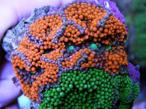 Рикордея флорида-Ricordea florida Максимальный размер: Примерно до 8 см в диаметре. Ареал: Карибский регион (похожие виды Конфетная рикордея (Ricordea yuma) встречаются в Индийско-Тихоокеанском регионе). Минимальный размер аквариума: Микроаквариумы 3,8 л или более. Освещение: Предпочитает умеренно освещенные области. Корм и кормление: Этот вид получает большинство своей энергии от зооксантелл, но его можно кормить планктоном или обогащенными новыми артемиями. Уровень пригодности для содержания в аквариуме/совместимость с рифовыми аквариумами: Очень хорошие животные для аквариумов. Содержание в неволе: Рикордея Флорида – это стойкий коралломорф, который бывает самых разных цветов, практически все они привлекательны. Это животное следует помещать в зонах умеренного освещения: если поместить его слишком близко к источнику яркого света или в слишком темных местах, оно обычно теряет свой цвет. Зрелые особи имеют круглые или неправильной формы диски, часто у них имеется не одно ротовое отверстие. Они образуют большие ковровые колонии, клонируясь продольно. Когда-то их бесконтрольно собирали с рифов, а сейчас их все больше разводят на фермах, и в продаже имеются особи, выращенные в морских хозяйствах. Ранее упоминавшаяся Конфетная рикордея бывает разных оттенков зеленого, фиолетового или оранжевого цвета. Еще Рикордея флорида (Ricordea florida) одно из самых красивых созданий природы. Несмотря на свои небольшие размеры (4-10см), этот флоридский коралломорф пользуется огромной популярностью среди рифоводов всех уровней, как у новичков, так и у профессионалов. Причина этого проста – относительно неприхотливые и подходящие к аквариумам любых размеров рикордеи подкупают своей неземной красотой и бесконечным многообразием расцветок. Отличный выбор для нано-рифа, ведь они непривередливы к качеству воды и не любят активной циркуляции, предпочитая спокойное течение, а также имеют небольшие размеры. В аквариумах больших объёмов колонии этих фантастических светящихся созданий всегда выделяются среди остальных кораллов своей яркой и неповторимой окраской. Рикордея флорида, пожалуй, также является рекордсменом по цветовым вариациям и имеет способность изменять свой цвет в зависимости от спектра падающего на нее света. Наиболее привлекательно они выглядят при актиничном освещении, при этом их колония похожа на густо рассыпанный, отливающий перламутром жемчуг. Рикордеи разных расцветок прекрасно уживаются между собой и, если посадить несколько различающихся по цвету рядом, то со временем это место превращается в главное украшение аквариума и поражает своей контрастностью, аналогии которой сложно найти среди других беспозвоночных. Меня с самого начала занятия морской аквариумистикой привлекли эти неповторимые «цветы». Они стали одной из первых покупок в мой совсем небольшой аквариум на 23 литра и прекрасно себя зарекомендовали. Как и у всех начинающих аквариумистов, первые шаги были не всегда верными и рикордеи стоически переносили все мои ошибки. Они живут у меня уже несколько лет, и из трех первых «малышей» их сегодня стало уже двенадцать. Правда, большинству из них я помогал разделиться самым варварским, но очень действенным способом – ножницами. Самое интересное, что уже через несколько часов после такой экзекуции их половинки возвращались 