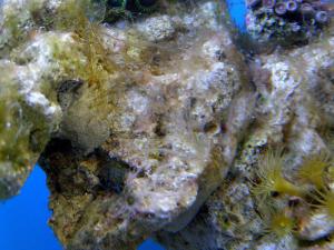 Появились в аквариуме всякие микровошки, микроблошки и микротараканы. А ещё непонятные "закорючки": Вчера на камушке выросли два ярко-оранжевых шарика, а сегодня утром они вроде как лопнули: Больше всего было похоже на две красных икринки. Может, подскажете, что это за закорючки и "икра"? Перед праздником была очередная чистка аквариума и "стрижка" - до и после: Я немного переставила зоантусы и паразоантусы - паразоантусы теперь сидят все на одной ступеньке, а красные зоантусы переехали на две ступеньки ниже и начали более активно раскрываться! Наверное, почти на самом верху им мешало достаточно сильное течение. Оставшиеся водоросли стали не просто расти отдельными веточками, а соединятся между собой чем -то похожим на плёнку или на паутину: Отрываются такие конгломераты легко и не очень разносятся по аквариуму. Тесты показывают, что вроде всё нормально: kH -11 pH - 8,5 NO3 - 0 NO2 - 0 PO4 - 0 Солемер при 25 градусах - 1,025. Измерила железо, просто так, для интересу Самый активный мой житель стромбус получил персональное имя - Весёлый Хоботун и почётное звание "Снежный барс", как единственный в своём роде стромбус-альпинист: Благодарности: