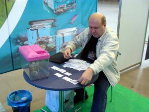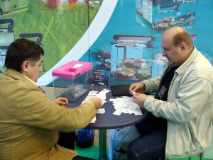Небольшой фотоотчетик с ЗооВетЭкспо за третий (финальный) день. Сразу приношу извинения за качество некоторых фотографий. В течении всей выставки, наш "красочный морской оазис" притягивал большое количество зрителей. Третий день не стал исключением. Морской огурец, посаженый накануне. Утро быстренько закончилось, и пришла пора Голоса посчитаны и записаны, теперь нужно определить победителя выставочного голосования. Победные "бюллетени" Финальный этап конкурса - оглашение результатов конкурса, и награждение победителей. Таким образом день подошел к концу, и настала пора собираться домой. Конкурс удался на славу, за что ОГРОМНОЕ СПАСИБО спонсорам и организаторам (в частности Валерию "arelav", за сей титанический труд). Также приятно было лично познакомится с многими из форумчан, которых до этого знал только по форуму -------------------- |