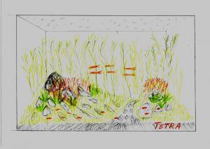 Крестница, после Московского конкурса, всерьез заболела дизайном аквариумов. С утра до вечера переставляет камни и растения в полученном в качестве приза аквариуме. Уже заказала живых растений. Представляем на Ваш суд ее первый эскиз скейпа. Не судите строго, 8 лет девушке! Первая в жизни проба в скейпе, сразу в международном конкурсе перед многолюдной аудиторией, одних папарацци было не счесть, а еще видеосъемки, интервью... Насте очень понравилось выступать на публике, сказала, что всегда будет выступать. В Киев приедем, если допустят! Всем участникам привет и удачи!! Благодарности: