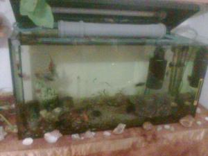 2 скалярии - полтора года 1 красная шапочка и 1 золотая - неделю как купил, им гдето по 2 или 3 месяца 2 молинезии - 7-8 месяцев 2 тернеции - около года 6 неонов - полтора года 2 данио - год 2 анцитруса - маленькие совсем тож неделю тому купил 1 минор - пол года в маленьком 30л 29темп. 1 диску, и он там уже год сам сидит, с еще одним маленьким анцитрусом, и я думаю если его к скаляриям бросить то он не выживет. |
