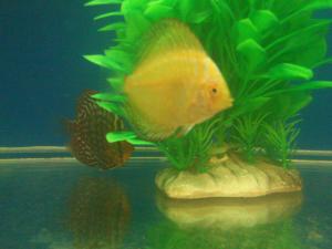 Я из Ташкента. Хочу рассказать про своих дискусов . Купил двоих подростков пиджан голубиная кровь (2,5-3 мес.), вроде нормально прижились , кушают нормально, только один по сильнее начал загонять второго , к столу не подпускает , тот что успеет ухватить то и кушает . Также в акве были посажены за неделю до этого 4 скалярий не больших , таких же по размеру . Так вот на скалярий внимания почти не обращает. Прочитал что дискусы стайная рыба и купил двух красных туркисов, они размером по больше (6мес.). После пересадки в общую акву минут через десять начали на боку по дну аквариума как бешенные гонять. Что это было? Стресс наверное .По совету продавца закинул соли .Вроде успокоились . Корм берут на дне, на верх не поднимается не кто . Перед пересадкой держал их в емкости отдельной и добавлял воду с общего в течении 25 минут ,потом бухнул их в общаг. Сейчас прячутся, один за фильтр, другой за искусственной ростючкой, пиджаны как вели себя так и ведут, то есть один ходит и кушает где хочет, второй только по возможности. Я дискусов завел в первые, до этого отлично жила и размножалось «африка ». Аквариум 230л., внешний фильтр JBL 900, внутренний чемпион 1500л/ч. Грунта нет, пару искусственных растений, всего населения 4 скалярий , 4 дискуса. Подскажите, что я не правильно сделал и какие мои действия? |