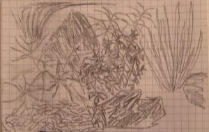 Собственно это и есть миссия Дизайнера в команде во время этого ШОУ, предложить приемлемую композицию и помочь "Жертве" воплотить это в жизнь. Аквариум 60 см - это уже не НАНО, но еще очень маленький аквариум и воротить там много не получится. Следовало остановиться либо на ГУСТОМ ЛЕСЕ либо на ТРЕУГОЛЬНИКЕ... это в плане общего композиционного профиля. Поскольку ГУСТОЙ ЛЕС это не очень выигрышный вариант для каких-либо конкурсов я предложил команде Треугольник. Хардскэйпом должны быть камни, поддержка растениями. Выбор растений для аквариума в 60 см длинны и 35 см высоты (минус грунт) не очень разнообразен. Криптокорины - только самые маленькие. Эхинодорусы - там простой эхинодорус теннелюс будет выглядеть большим кустом-солитером. Длинностебелька - самая мелкая. Гетерантера, гемиантус, ротллы пуссила, грин, немного людвигий, погестемон ... и все. ИМХО. В качестве солитера для фокальной точки мы решили использовать Бликсу японскую, это её размеры. Да, есть еще элеохарисы, но предложить "жертве" начинать с них я не решился, тем более композиция камни и элеохарис - достаточно избита, и сотворить там что-то новое уже не реально. Камни... Перебирал я разные камни, и гранит и песчаник... но потом увидел китайские камни у Валеры (Арелава) в НАНО проекте (с очень живой фактурой, интересным рисунком, не меняющие жесткость воды) и... купил их для нашей команды. Итак базовые вещи есть: камни задающие стиль ивагуми, растения... Осталось сесть и нарисовать... И проблемка была не в том, что я давно карандаш в руках не держал (хотя и это правда - все мы жертвы компьютеризации), основная проблема была в том, что картинки в воображении менялись очень часто, и я начинал стирать нарисованное, перерисовывать...и эта рефлексия меня сильно замучила. Но надо же было на чем-то останавливаться... Когда я уже посмотрел на камни, повертел их и остановился на вполне определенном расположении их в группе плюс растения, рисовать стало проще. Сначала оформились базовые элементы, потом и вся композиция в целом. Итак вот камешки и базовое их расположение в группе Теперь картинки в которых я пытался пощупать как гетерантера остролистая, гемиантус и валиснерия могут смотреться на этих камнях. Ну и в результате вот такая картинка будет воплощатся в жизнь нашей командой. При этом я не останавливаюсь на полученной картинке, а расчитываю, что по мере оформления (in situ) что-то может поменяться, в общем, жизнь подсткажет. Вчера мы с Виктором занимались расположением камней в аквариуме, пока без грунта - пытались найти место каждому камню (ICQ, мобильний телефон, фото-галереи Picasa). Увлекательное занятие я вам доложу. Если Виктор решит выложить эту гору снимков в этой теме - будет забавно наблюдать, как была воспринята им моя задача-картинка и как его предложения и идеи били приняты мною, на каком уровне осуществлялось это творчество. Мне нравится то, что у нас получилось. Будем творить дальше. Теперь очередь за посадкой растений. С уважением |