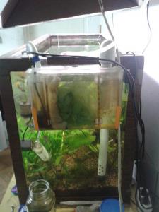 Если Вы смотрели 2 последующих фильтра (этот сломался по причине древности материала), то поймете, что "в плане упрощения конструкции, большей надежности от протекания и удобства обслуживания" врядли можно придумать проще. Надо 3 секунды, чтобы снять рюкзачок с работы, даже не отключая префильтр, и унести в ванную для смены синтепона, замены угля и промывки проточной водой керамики Извините, видел только одну модель. И есть сомнения что через отверстия, пинцетом все так быстро достается, моется и собирается.... Сам фильтр все таки под давлением... При его снятии есть утечки? Может в третьей доработке и все по другому... Я ж не для спора... Я уважаю Вашу работу. Все сделано аккуратно и идеально... Я для того когда будет 5-я, 20-я доработки... рассмотрите другой вариант. Мне кажется он проще в исполнении, обслуживании и надежней от протекания... Исполнение Вашего фильтра больше подходит если кто хочет спрятать фильтр в тумбочку. А уж если он рядом с аквариумом и "верхние" плоскости совпадают... то можно сделать проще... С вашего разрешения выкладываю фото Очень бюджетный вариант получился. Сосуд - после жевачек каких-то (уж лет пять в гараже валялся), помпочка - ремонтная, трубы - после ремонта остались, Из покупных только мочалка... Согласен, не эстетично, но для фильтра на работе (производство полиэтиленовых пленок) - очень хорош. Конечно у меня место более удобно для обслуживания... Я ничего не снимаю. Только останавливаю помпу и вынимаю/мою фильтра... Еще раз извините если чем то обидел. Просто если сосуд под давлением, то в отсутствие хозяина помпа может вылить всю воду на пол... С уважением, Владимир. -------------------- Зацвела нимфея краснся тигровая... Увирандра (апоногетон Мадагаскарский). Путь от цветения до прорастания. Самодельный Lily Pipe Ясли. Или аквариум в аквариуме Фильтр-рюкзачек. Реанимация. СО2 реактор по типу Томаса Барра. |