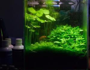 Михаиха, субстрат питательный, Fluval Plant Stratum. Осмос, СО2, свет 20 Вт, 9 часов. Население - подросток гурами, отоцинклюс и пара десятков чериков.