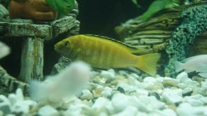 Мало что могу нового написать) В выходные была сделана подмена воды, подправлены потрепанные роголистники...распределены на два угла) впрочем сегодня они снова плавают "кучей" в одном углу аквариума. Два анубиаса дали по новому листочку, рыбы их не трогают...одну только криптокорину подгрызают...скорее всего это анциструсы....причем там посажено два кустика...более старый и дырчатый грызут, новый пока нет. Маленькие три еллоу осмелели, плавают в толпе остальных рыбок. Одна попалась в кадр.. Есть несколько вопросов к вам, подскажите пожалуйста! Что это за растение такое...оно с жесткими листьями, ни сомы, ни цихлиды не трогают его Самец самый крупный мой...еллоу...такой полосатенький...это нормально? И два наших ломбардо...пока никуда не пристроили... Один из них заметно посерел/посинел...может быть это самка? второй более желтый, но все равно не чисто, а немного с синевой... вычитала что второе их название цихлида-оборотень...очень им подходит) по дополнительным укрытиям у меня в аквариуме пока никаких изменений...камни еще не прибыли...ждем-с... -------------------- |