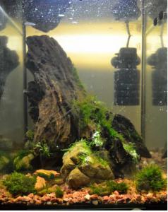 После высади первой порции мха стало ясно чего не хватает картинке - разнообразия и зелени =) ! Я высадил остльную часть мха. Пришлось наматывать мелкие пучки мха на небольшые камушки и осколки глиняного горшка. размером примерно 3х1,5см... и такими осклоками я устелил все дно где была возможность. Сейчас еще хорошо видно открытые места битого горшка, но после разрастания сха все должно слиться в один ковер из разных сортов форм и оттенков. НАмотаные мхи еще не стриг, хотя часть уже начала отмерать... Они сейчас и портят всю картинку. Спереди старался высадить Флейм и Бабл. НА задний план и по углам переднего высадил Кристмас. Кристмас имеет большые(сравнительно) и пушистые паростки, что на заднем плане будет смотреть очень даже ничего... ДОбавил папоротник и Анубиасы, по -моему смотрятся - ничего так) Вобщем теперь осталось лить удо и на выходные буду ставить СО2. До этого время я соберу мозайку из посылок посылок с Удо и светом, разбросанную по городу... Все равно свет играет свою роль, с настройками фотоаппарата я еще не игрался. НО 11 ватной лампы хватает чтоб красиво подсветить аквас. А поставлю Диодную - совсем отлично будет. Итак пару слов... После высади первой порции мха стало ясно чего не хватает картинке - разнообразия и зелени =) ! Я высадил остльную часть мха. Пришлось наматывать мелкие пучки мха на небольшые камушки и осколки глиняного горшка. размером примерно 3х1,5см... и такими осклоками я устелил все дно где была возможность. Сейчас еще хорошо видно открытые места битого горшка, но после разрастания сха все должно слиться в один ковер из разных сортов форм и оттенков. НАмотаные мхи еще не стриг, хотя часть уже начала отмерать... Они сейчас и портят всю картинку. Спереди старался высадить Флейм и Бабл. НА задний план и по углам переднего высадил Кристмас. Кристмас имеет большые(сравнительно) и пушистые паростки, что на заднем плане будет смотреть очень даже ничего... ДОбавил папоротник и Анубиасы, по -моему смотрятся - ничего так) Вобщем теперь осталось лить удо и на выходные буду ставить СО2. До этого время я соберу мозайку из посылок посылок с Удо и светом, разбросанную по городу... Все равно свет играет свою роль, с настройками фотоаппарата я еще не игрался. НО 11 ватной лампы хватает чтоб красиво подсветить аквас. А поставлю Диодную - совсем отлично будет. -------------------- Благодарности: