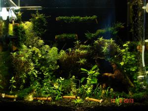 Выглядит наверное смешно. Лежат просто палочки на дне и на стеклах висят Когда обрастут будет классно) Общий план нравится, смотрится как непролазная чаща в лесу.. Наверное коряга с дуплом на такую ассоциацию наводит.. ну и свет. В общем здорово -------------------- |