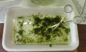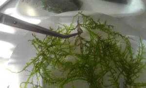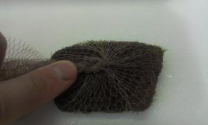 Рождение проекта: Как я говорил раньше, самое сложное для меня, было определиться с проектом, в виду моего плотного рабочего графика и насыщенной семейной жизни. Так как, экзотическими камнями и корягами с горных вершин Азиатского континента мне заниматься не было времени, я решил не изобретать велосипед, а использовать все что было раньше у меня в "закромах", а было следующие : куски лавы и обработанные ветки виноградной лозы. И еще, может кому будет интересно. У меня есть один кусочек лавы из которого я сделал "домик" для креветок. Лава материал не прочный, хорошо поддается обработке и с помощью дрели, напильника, ножа, маникюрной пилочки и т.д. кому как удобно, из него может получится следующие: Покрутив немного ветви лозы, убрав лишние, я оставил три ветки и получил вот такую композицию, которая мой взгляд показалась оптимальной: Карантин растений: Расскажу немного о карантине который проходят растения прибывшие на ПМЖ в мой аквариум: В первую очередь, растения поддаются тщательному осмотру, при котором удаляются подгнившие листья, подрезаются корни, удаляется грязь которая накапливается в густом сплетении корней или веток, что в основном присуще мхам. В данном случае, растения можно промыть под проточной водой из крана или промыть в емкости с водой: Следующий этап, это дезинфекция растений при помощи 3% Перекиси водорода. Как на меня думаю самый простой и безопасный способ продезинфицировать растения от водорослей. Дозировку использую 5мл 3% перекиси на 10л воды, эскпозиция 30-40 минут. Газон ричии: Мой способ приматывания риччии к кусочкам обработанной лавы. Берем покупаем мочалку, стоимость которой начинается от 3 грн. и выше, в моем случаее 10 грн. ключевую роль в данной покупке сыграл цвет, который идеально вписался в тон. Затем развязываем шнур. Получается большая сетка чулок, который разрезаем вдоль. На плоский камешек из лавы, тонким слоем накладываем риччию. Одеваем сетку поверх риччии, с задней стороны методом скручивания прижимаем растение к лаве и фиксируем с помощью лески (в моем случае) натяжение сетки. Обрезаем ножницами лишнюю сетку. В итоге получаем вот такую заготовку для кочки. -------------------- |