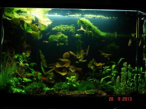 Всем привет! Давно не обновлял тему. аквариум по преженему живет своей жизнью, в течение которой я стараюсь не вмешиваться. Тесты воды не делаю, так как смысла в этом уже не вижу: водоросли ушли полностью, растения чувствуют себя хорошо. Конечно, хочеться что-нибудь поменять, пересадить, но пока что это все в планах. Сделал фото сегодняшнего состояния аквариума.