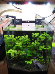 Все очень хорошо растет, кроме стаурогина. Каждую неделю прополка и подрезка. Так что рыбе места хватает, тем более что через месяцок собираюсь это хозяйство пересадить в 100л, а здесь креветочник будет. Это был тестовый вариант, пока разбирался со светодиодами и спектром.