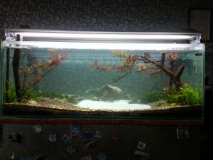 Этот пост темы не касается).Просто решил скинуть здесь фото аквариума, который я делал клиенту.Он хотел заросший аквариум с корягой.Вот и получил заросший.