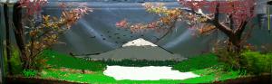 Людвигия растет отлично на ветках.Так как она близко находится к свету,то листья набирают сочный цвет.Я специально долго не доделывал скейп, чтоб каждый день на него смотреть свежим взглядом и увидеть в голове полную картину.Долго на телефоне в фоторедакторе дорисовывал на фото будущие элементы скейпа.Теперь со всем определился и уверен что выйдет красивая картина. Главное это сделать максимально похожую копию Фудзиямы-это очень важно.Потом покрашу вершину и вскрою ее лаком,чтоб краска со временем не вымылась.Потом достану левые коряги просверлю в них дырки и повтыкаю ветки.А справа в верхнем углу из людвигии сделаю крону.Так более похоже будет на дерево. -------------------- Продаю сайдекс.Тел.095 396 96 40-Славик Там,где течет река Гармония души Полет мыслей "После дождя" в 270 л "Тишина" в 270 литрах Iwagumi vs ryoboku 2013. Команда Ryoboku. Проект "Немая песнь леса". ![]() www.aquafanat.com.ua/forum/index.php?showtopic=41589 www.aquafanat.com.ua/forum/index.php?showtopic=42168 |