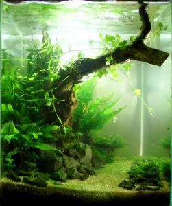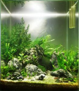 Во первых правый дальний камень наклони слегка к главному, а то он сильно прямо стоит Папоротник перед ним явно закрывает камень и не совсем в тему. Листики между камнями тоже. Больбитис если разрастеться, а он разрастеться вообще все перекроет. Или коряжечка , или ненавязчивая длиностабелечка, или может просто один узколистный папоротник за главным камнем. Хардскейп интересный, мне нравиться. Помимо наклона, еще удели внимание более мелким деталям. Утебя по акве разбросаны куски камушков. Они далеко от основных камней, подвинь их ближе к камням. Так что бы быо впечатление что камушки откололись от более больших. Моржет вообще мох Виллоу за главный камень засунуть. Тогда будет все более утонченым. А то большие листья слишком перегружают картинку. Да подумай - коряжка, тонкая или средненькая, несовсем ветвистая, с небольшим кол-вом мха и она находиться за главным камнем среди мха Виллоу (или ситняга?) Но коряжка не прямая, и не высокая, примерно на 2/3 высоты аквы. Чтобы она была немного выше основного камня, для того чтобы когда на ней мох подразрастеться, было пространство между камнем и мхом. Поищи работы Ольги Ужеговой в конкурсах Денерли. Поймешь о чем я говорю. -------------------- Аккаунт заблокирован за мудацкое отношение к пользователям форума. Благодарности: