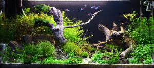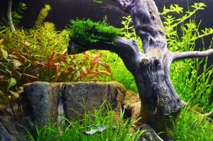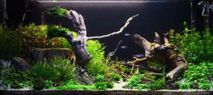 По изменениям в акве. Доработал свет. Заменил 2 лампы Aquatum на Osram. В итоге получился такой набор (от переднего стекла): Osram 865-6500К | Osram 840-4000К | Osram 865-6500К | Osram 840-4000К. Чисто визуально хотелось бы немного холоднее свет у переднего стекла.. Так же переделал стандартную алюминиевую балку от акватики. Лампы на ней стояли по центру. Из за этого по углам аквариума был большой недосвет. В балке вырезал новые отверстия под патроны, и сдвинул лампы по краям. Теперь свет стоит в шахматном порядке. Из неприятного. Водоросли продолжают одолевать, немного больше чем раньше. Если правильно определил, то борода, нитка, и вьетнамка. На фото хорошо видно. Еще тесты от JBL на фосфат неразберихи добавили.. Некоторое время фосфат по этому тесту держался ~ 2мг. Я только доливал нитрат до нужной пропорции 15:1. Возможно это и стало причиной.. Питания было больше, чем растючка была в состоянии съесть.. В малом аквариуме фосфат в начале тоже по тестам не съедался долго. И с водорослями была почти такая же проблема. Но потом все пришло в норму. Почему так было я так и не понял. Чтобы пока не применять химию, кинул в акву хороший пучек роголистника, чтоб помог растючке выесть излишки удо. И вроде помогает). Фосфат начал падать. В общем наблюдаю дальше. Если у кого есть по этому поводу соображения или советы, буду благодарен. Кстати, пишут что креветки аманки едят нитку и вьетнамку.. Это так? Так же были небольшие пересадки и перестановки. С права, как и слева всю переднюю часть думаю засадить глоссой. Дорожку по центру хочу оставить открытой. В правом углу посадил эх. везувий под заднее стекло. Перед ним посадил хедиотис. Правильно это было или нет х.з, время покажет). Ну или может кто то подскажет.. Ободрал весь сгнивший мох с верхней ветки левой коряги. С нижней думаю тоже придется обдирать, виду у него совсем нехороший.. Придется заново мотать мох на корягу, вместо сгнившего. Урок мне на будущее, чтоб стриг чаще.. Еще в планах добавить мох на правую корягу. Пока думаю как это реализовать, корягу из аквы вынять нельзя. Но в общем, вроде пока все не так уж и плохо.. наверное. Да осилит дорогу идущий) Что то много текста получилось.. Несколько свежих фото. -------------------- |