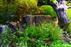 paladiu, Спасибо на добром слове). Вчера была небольшая стрижка Людвигии и Дидиплиса, т.к. уже до поверхности воды дотянулись). Так же есть сомнения по эхинодоросу везувию сзади слева за корягой.. Наверное уберу его оттуда, высоковат. Еще приятный момент, растючка понемногу пузырять начала:). В маленьком аквариуме такого почти не было.. Из неприятных моментов. Ночью на выходе CO2 поднялось давление раза в 2-3.. Но сильно надымить видать не успело.. к утру было всего несколько трупов креветок черри. Остальные вроде все в норме. У других читал при подобных проблемах вымирало по пол аквариума.. Не прет что-то мне с новой балонной сис-мой пока.. Второй баллон спускается за неделю..( Мазал все соединения мылом, нигде утечек вроде не было видно.. и все равно блин.. Сегодня заправил баллон. Буду поэтапно искать утечку. В аквариум пока поставил алюмин. сис-му кипа, справляется на ура) Ну и на последок несколько свежих фото. И в дополнение небольшая видюшка). Приятного просмотра в Full HD - -------------------- |
