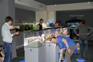 Пока взрослый конкурс набирает обороты, выше этажем проводиться детский конкурс по оформлению аквариумов для петушка.