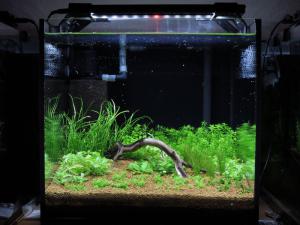 Аквариум: 35х35х35 см, стекло толщиной 6мм, полированные торцы. В виде заднего фона, использована "Самоклеящаяся пленка" чёрного цвета. Грунт: AQUA-ART AQUASUBSTRATE II+ (Б/У) Фильтрация: Аквариум оборудован помпой Aquael Circulator 500 – 500 л/час с самодельным донным фильтром в моём случае это re-UGF - с обратным потоком (подача воды под фальшдно). Изготовление фальшдна: -------------------- Благодарности:
