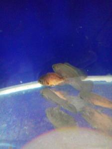Заказывал у человека который, в свою очередь, получил их с Тайланда И вот наконец-то заветный пакетик у меня в руках Быстро-быстро домой и распаковываем Выпустил в 25-ти литровый аквариум на карантин и, честно говоря, расстроился. Два тигровых и два красных У тигровых состояние нормальное но цвета и узора нет совсем. А вот состояние редов было немножко хуже. Животы впалые и один мог плавать только на боку и головой вниз я думал он не выживет но все обошлось А здесь хоть и плохо но видно нормально окрашенного тигрового малыша, приобретенного в местном магазине. (и в 4 раза дешевле Поставил им обогреватель и фильтр который дул вверх образую небольшой фонтанчик для хорошей аэрации о что б течение в аквариуме было небольшое. Кормил несколько раз в день заморозкой артемии, разными миксами для цыхлид. Сначала ели совсем не охотно а потом понемножку привыкли. Что меня очень радовало Приехавшие тигры Один из редов А здесь видно "местного" тигренка:) Продолжение следует -------------------- |