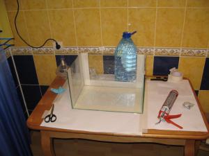 Баночка - 45/30/27 Ну о всей эпопее ее появления я умолчу, но в конечном итоге точки соприкосновения с любим супругой все таки были найдены. Аквариум не стандартных размеров, поэтому решил клеить самостоятельно в прямом смысле этого слова. И когда влезли руки в силикон … понял в очередной раз смысл пословицы «Не лізь по перед батька в пекло» - уважаемые господа, в очередной раз убедился – каждый должен заниматься своим делом, но опыт, даже неудачный – это опыт.