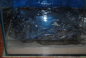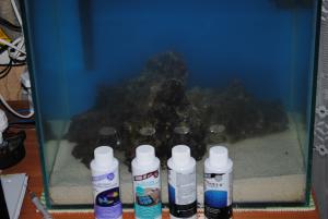 ПОНЕДЕЛЬНИК, 26.07.10г Вы помните, что в воскресенье ни камней, ни песка я не купил,т.к. ЦА был закрыт - выходной. Вечером в воскресенья созвонился с Александром из ЦА, и договорился, что я поеду туда в понедельник. Придя в ЦА был поражен количеством аквариумов и их содержимым Купил в ЦА 4,5 кг ЖК, 9 кг живого песка, получил акционный стартовый набор бактерий и скидку Получилось 4кг *25 уе, и песок за 320 грн. Плюс скидка 7%. Соль я не считаю, т.к. у меня есть акционных 2 кг. Приехал домой и начал чесать репу... Думаю блин, как теперь это садить? Первым делом набрал 20 литров осмоса. Вернее набрал 10, и начал заполняться бачок. А тем временем... Тем временем я думал как бы мне сделать мерный сосуд. Вобщем экспропреировал у жены мерный стакан на 500мл, но этого мало. Нашел в закромах старый кувшин от фильтра, отмерял на нем 1 и 2 л. и маркером заметил риски. Также у меня было несколько контейнеров 20,10 и 5 литров, и аквариумное ведро на 16л. Я задумал развести 10л соли, положить туда ЖК (а я их не распаковывал до времени), и начать заниматься аквасом. Вобщем начал мутить раствор при помощи бытовых электронных весов. У Валеры узнал, что соли нужно сыпать 38гр. на 1 литр осмолята. Так я и делал. Отвесил 380 гр. соли и забабахал в воду. Оказывается ее нужно и размешивать Вот камни А вот аиптазии Пришла очередь аиптазий. Брал каждый камень, ложил его в контейнер с водой, когда аиптазии раскрывались - колол в них кипяток, и отковыривал от камня, где это возможно. Думал всех убил... Наивный.. Теперь займемся песком. Песок, несмотря на его цену мне понравился. Во-первых вакуумная упаковка, во-вторых он с водой. В третьих - с микробами полезными Вот как он выглядит: Раскрыл упаковку песка, да и бухнул в аквариум. Разровнял, поставил на него мусорный пакет, чтоб муть не поднимать, и начал наливать... И тут случились первые грабли. Я неучел толщину песка. У меня получилось сантиметра 3. Сразу доставать его неподумал, а потом муть незахотел поднимать, а вот сейчас ламаю голову - что делать... Может и так пойдет.. Как вы думаете? Может еще пару стромбусов посадить... Ладно, это лирическое отступление... Да, воду лил при помощи 500 мл. кружки, дабы знать сколько точно туда влезет. Налил пару литров (5 или около того) и поставил камни Накрыл это дело пленкой и продолжил наливать. Всего получилось 32 литра чистой воды. Поставил риску на аквариуме, чтоб знать докуда каждое утро наливать. Т.к. вода была неочень мутная, решил сразу включить фильтр основной. Поставил туда 2 пакета с пуригеном, налил геля бактериального на губку. Правдя я случайно один пуриген разорвал (мешочек), и немного попало в воду. Пришлось шить ИТАК: ИСТОРИЧЕСКИЙ МОМЕНТ!! Понедельник, 26.07.2010г, ПЕРВЫЙ ЗАПУСК НАНО-МОРЯ В РАМКАХ АКЦИИ НАНО-РИФ ЭТО ПРОСТО Вот так он выгладел сразу после запуска, в 19-00. Запустится заняло где-то 3 часа. Это состояние на 21 час. Критически осмотрел это дело, и понял что камней мало... надо докупать! Непонравилось как оно выглядит. Кстати, вставал ночью смотреть на ночную жизнь. КИШИТ там все жизеью! Я уже писал про слизь А теперь немного живности, которую я разглядел в понедельник после запуска. Я вам скажу - втыкать туда можно часами! До чего захватывает!! Это при том, что там голые камни!! -------------------- |