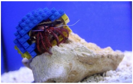 Лиана Райли говорит: "Мы решили предоставить Гарри широкий выбор объектов, в числе которых был и специально созданный для него домик из синих, красных и желтых кирпичиков Lego. Но он отказался от предложенных раковин морских улиток в пользу искусственного
