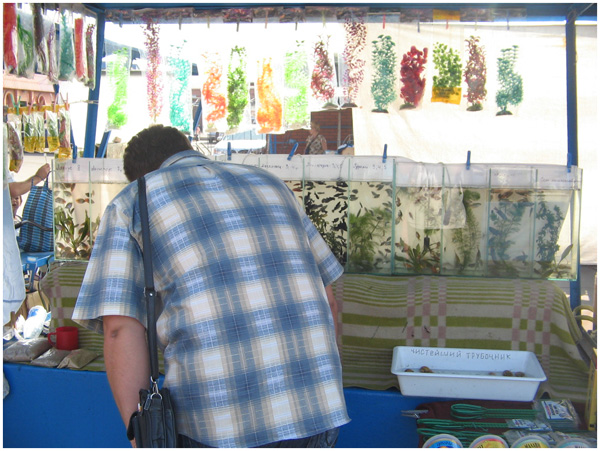 Теперь хочется немножко порассуждать на тему , - Что делать?! Лично мне видится несколько вариантов выхода из так называемого простоя. Конечно же, самое главное - наладить диалог с покупателем. Нужно чуть активней советовать и даже иногда навязывать точку зрения, ведь как начинающему аквариумисту удержаться от покупки таких интересных полосатых рыб (суматранских барбусов), скалярий, неончиков и пары-тройки золотых рыб и пустить это всё в 20-30 литровый аквариум, ведь сколько таких клиентов, может на них и держится наш рынок, ведь рыбки в такой компании и в таком объёме проживут не долго и скорей всего хозяин уже через несколько месяцев придет на рынок и снова купит. К стати говоря, встречаю многих знакомых и на вопрос «Есть ли у тебя аквариум?» почти все как один отвечают, что мол был да все рыбки постоянно дохнут. Вот в направлении популяризации и просвещения (наверное не очень правильно подобрал слово, но всё же думаю подойдёт) нужно всем нам работать и продавцам и покупателям и тем кто не покупает, не продаёт но неизменно приходит на рынок. Ещё один вопрос который хотелось бы упомянуть это, какая-то патологическая боязнь наших аквариумистов познавать, что-то новое. Я вот спрашиваю иногда про новые, даже не новые, а просто популярные виды рыб, которые у нас не встречаются, вот к примеру попса вроде звёздчатого анциструса или коридороса панды, мало кто видел, мало кто слышал, но все наотрез говорят что новая и чуть более дорогая рыба у нас не пойдёт. Может и не пойдёт сразу, потому что не все аквариумисты в городе знают и ценят эту рыбу, но надо пробовать и тогда вместо 3 грн. за обычного анциструса можно будет получить и 15 и 20, а может даже 30 грн. за звёздчатого. Вот всё же не стоит разводчикам и продавцам бояться новых видов, может не часто, но хоть несколько раз в год пробовать, рисковать, экспериментировать.