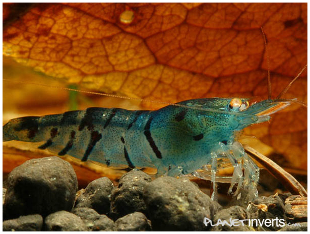 Креветка Синий Тигр один из наиболее красивых видов креветок. В отличии от обычной креветки Тигра, этого вида все тело окрашено в синий цвет, при этом у Синих тигров ярко оранжевые глаза, которые великолепно смотрятся на темном теле. Для того, чтобы полностью оценить все великолепие этой креветки нужно непременно увидеть ее вживую. Это не очень сложный в содержании вид креветок, но, к сожалению, и весьма дорогой, исходя из его редкости. Ухаживать за ними так же легко, как и за обычными Тиграми, разве что хозяин будет уделять им больше внимания из-за их дорогой стоимости.