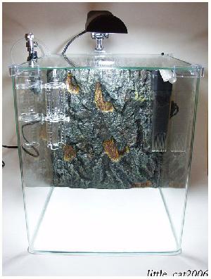 Аквариум размерами 30х30х35 см. (д-ш-в) - итого 30 л. (7,9 US Gal.) Стекло очень прозрачное и красивое, нет никаких пылинок, пузырьков и оттенков. Переднее стекло загнуто, без швов. Аквариум укомплектован покровным стеклом.