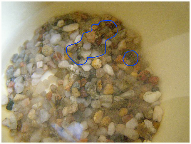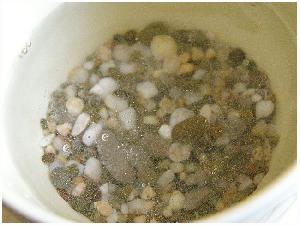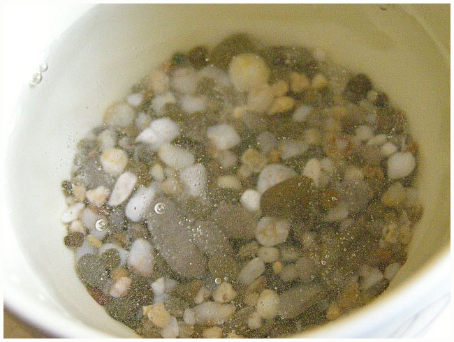 Отступление. Если грунт шипит в уксусе, то ему ничего не поможет, но в данном случае есть одно но. Камешки (не известняки), из которых состоит морская галька, имеют поры и трещинки (любые, даже самые твёрдые породы всё-таки не цельное плотное вещество без изъянов). В порах и трещинках может накапливаться соль - камни как бы просаливаются, в этом случае кипячение с уксусом в пресной воде может помочь. А может и нет - вот это я и хочу выяснить - насколько верны мои предположения о "засолке" грунта и может ли кипячение в этом случае помочь.